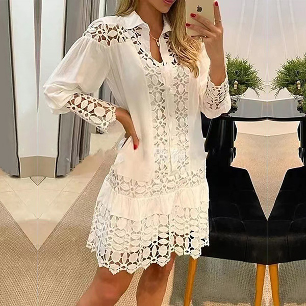 This dress comes with a slip dress included, ensuring both comfort and coverage. Featuring a beautiful floral pattern hollowout design, this dress adds a touch of romance and sophistication to your look.