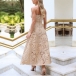 This is a sophisticated and enchanting lace dress that exudes elegance and charm. The floral jacquard fabric adds a touch of luxury and texture to the dress, creating a rich and opulent look that is perfect for special occasions. The halterneck design offers a chic and flattering silhouette, perfect for showcasing your shoulders and adding a touch of glamour to your outfit. Wanna have one?