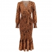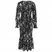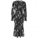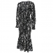 How about this dress? The floral print adds a touch of femininity and grace, while the V-neckline and long sleeves offer a classic and timeless look. The fishtail hemline adds a touch of drama and movement, making it perfect for formal events or special occasions.