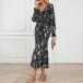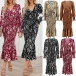 Elegant Floral Printed V-neck Long Sleeve Self-tie Fishtail Dress