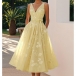 Look at this dress~The flattering V-neckline elongates your silhouette and adds graceful femininity, while sleeveless styling keeps you comfortable and allows the print to take center stage. A self-tie detail cinches your waist for customizable definition, creating a flattering hourglass shape that you can adjust to your preference. The flowing silhouette drapes beautifully over your body with effortless elegance. Blossom with graceful sophistication in this enchanting party dress that celebrates botanical beauty and feminine charm.