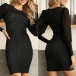 Elegant Gauze Spliced Long Sleeve Round Neck Bling-bling Bodycon Dress