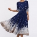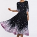 Elegant Half Sleeve Round Neck High Waist Printed Dress