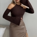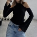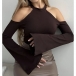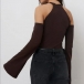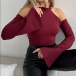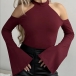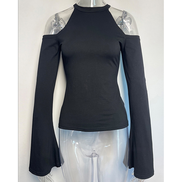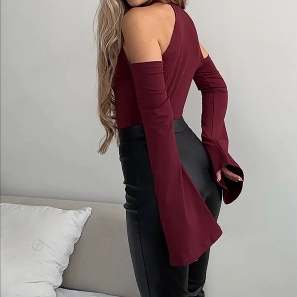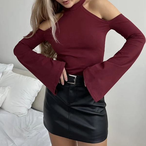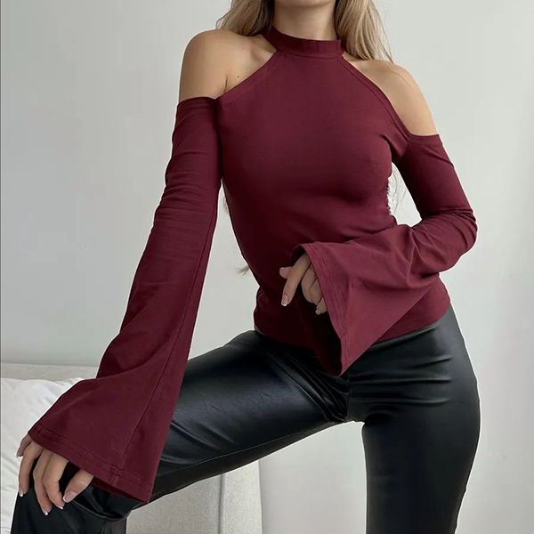 Elegant Halter Neck Cold Shoulder Top - Long Bell Sleeve Cut Out Slim Fit Shirt