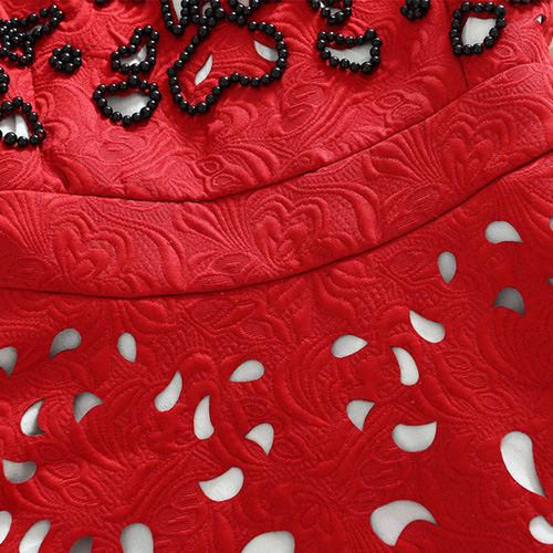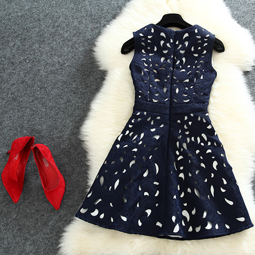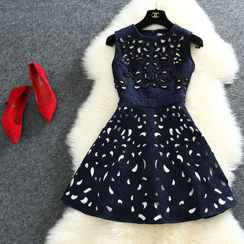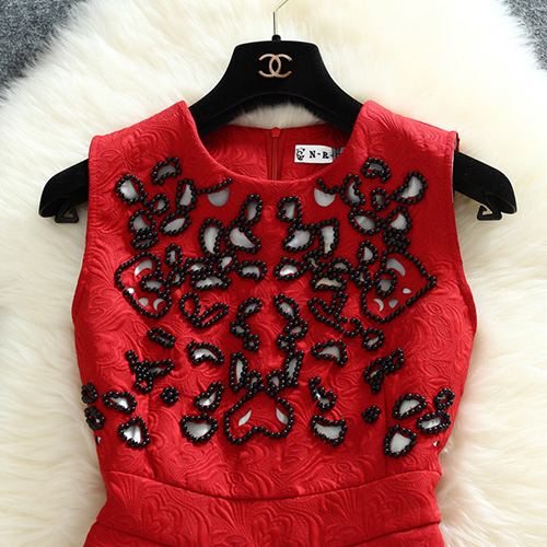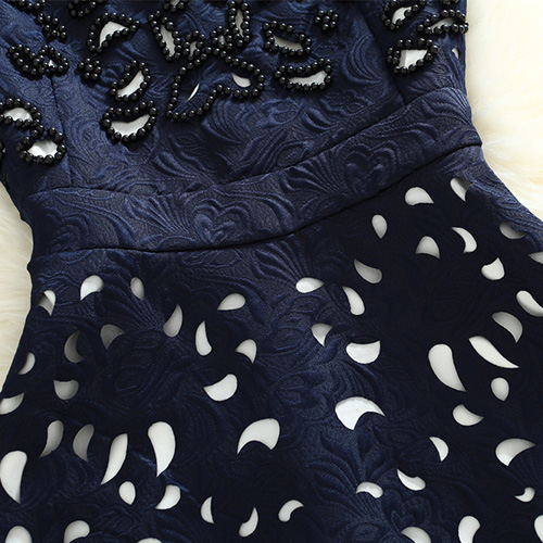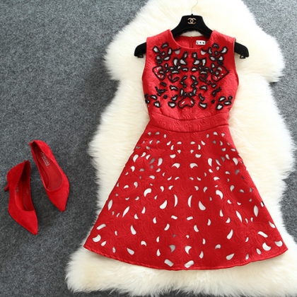 Hollow out style,with beaded design,chic and glamorous. Sleeveless,round neck and slim