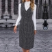 Elegant Houndstooth Printed V-neck Sleeveless Buttoned Dress