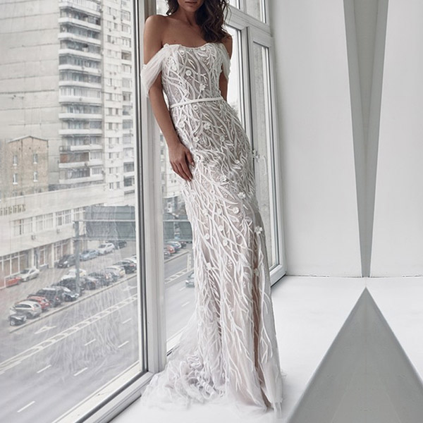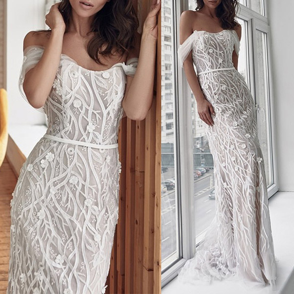 Elegant Jacquard Lace Strapless Fishtail Hemline Party Dress