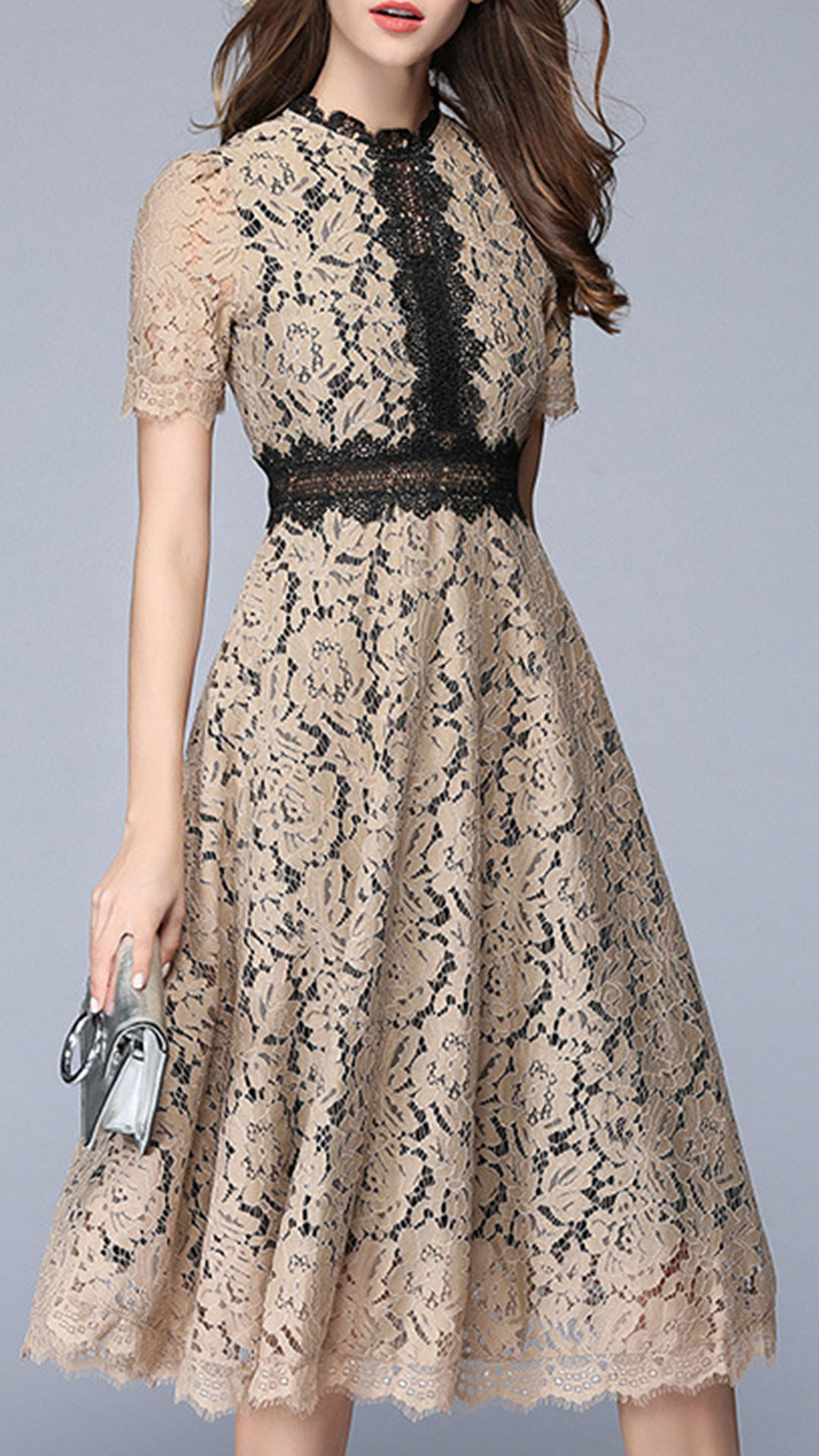 This sophisticated and refined dress is a true statement piece that combines the timeless elegance of lace with the modern allure of a jacquard-patterned design.Color:Camel,Blue,which one do you like?