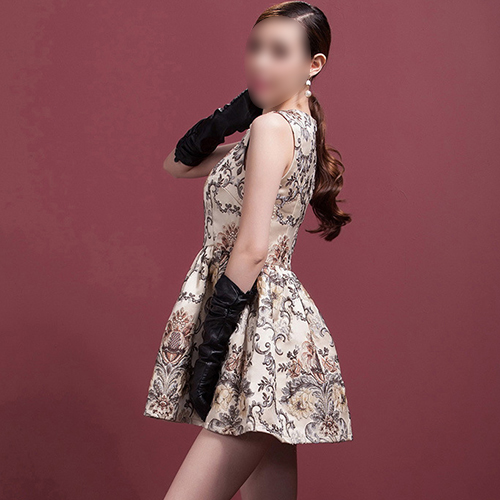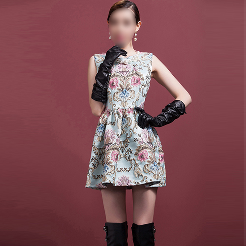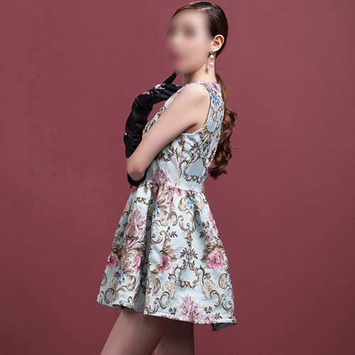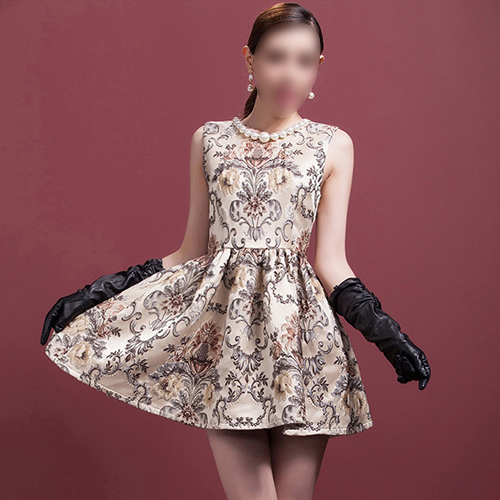 This dress features exquisite jacquard craft,neckline with pearls for decoration,