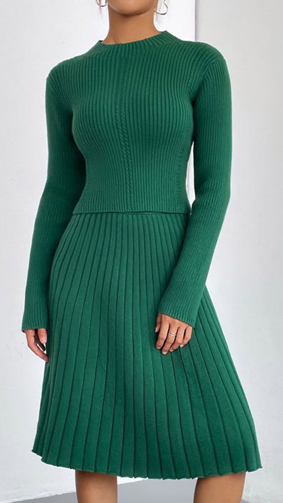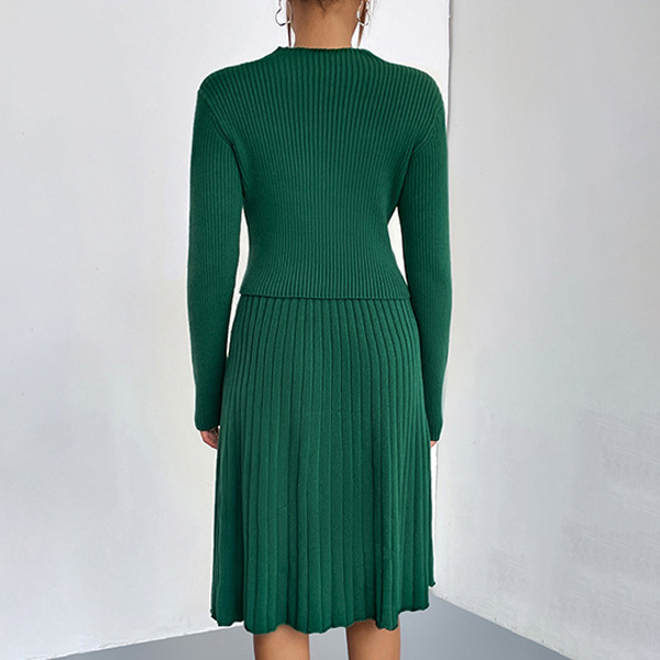 This set includes a round neck sweater and a matching skirt, both crafted with meticulous attention to detail. Whether you’re attending a social gathering or heading to the office, this Elegant Knitted Ribbed Two-piece Set is a go-to choice.