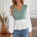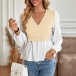 Elegant Knitted Spliced V-neck Long Sleeve Shirt