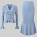 Elegant Knitted Two-piece Set Consist of Ruffle Cardigan and Fishtail Skirt