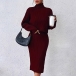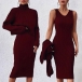 Elegant Knitted Two-piece Set Consist of Turtleneck Sweater and V-neck Tank Dress