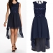 This dress is designed with round neck, sleeveless, backless and high-low hemline. Cozy