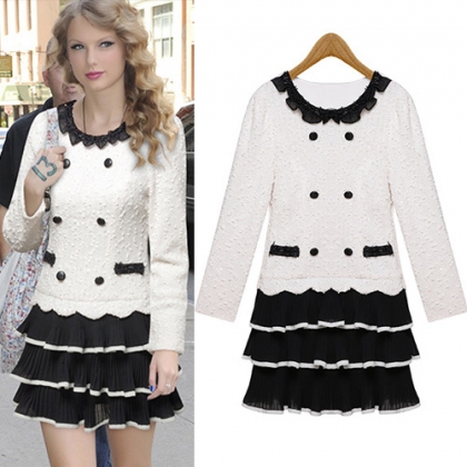 You look so sweet adn elegant in this dress. It features round neck design,with lace for decoration,