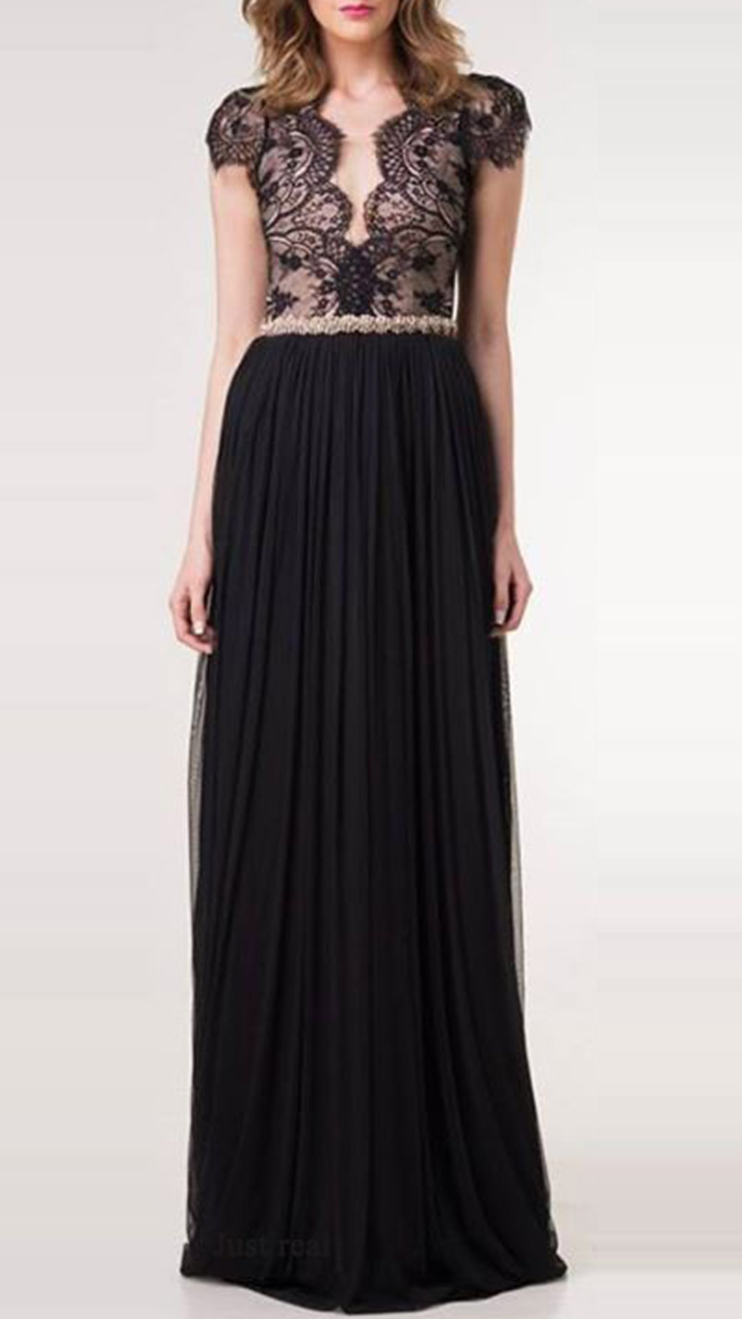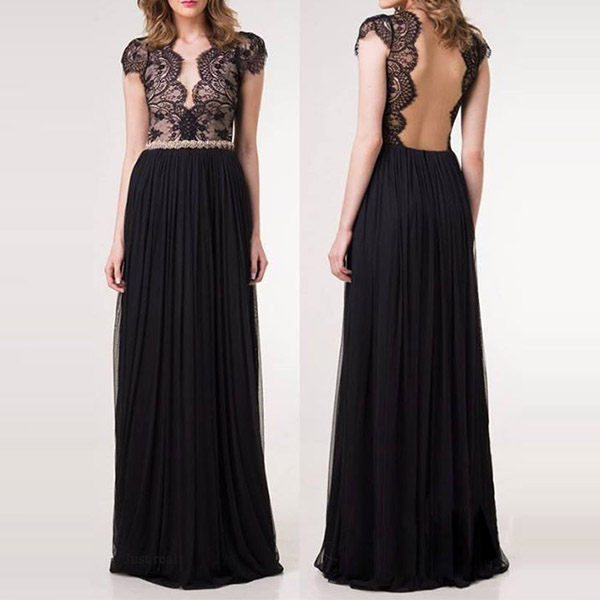 This elegant dress features lace splicing bodice, a backless design, and pleated details for an elegant and glamorous look. Pair it with heels and minimal accessories to let the dress shine.