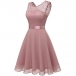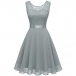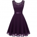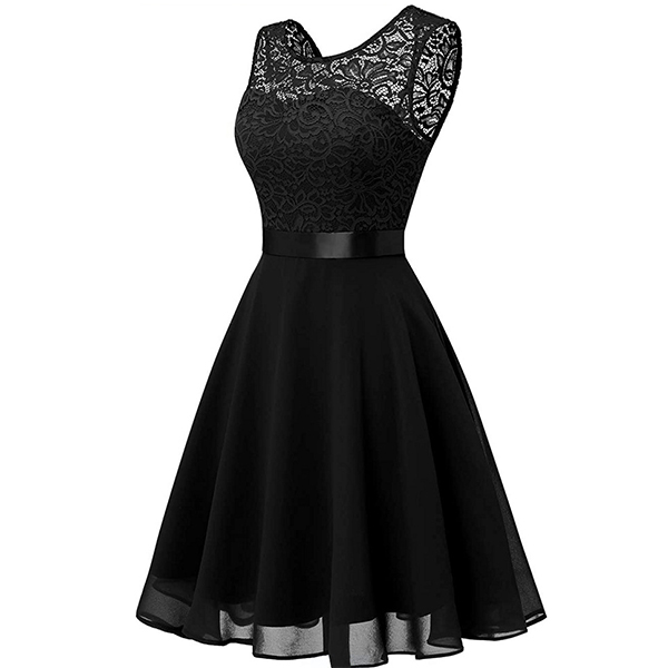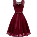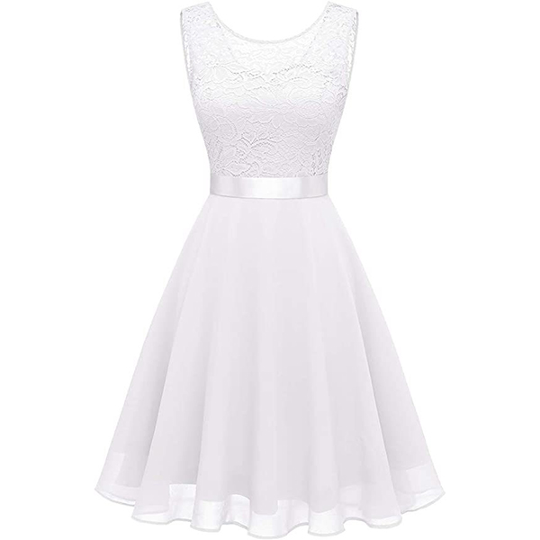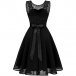 Elegant Lace Spliced Chiffon Crew Neck Sleeveless Mini Dress