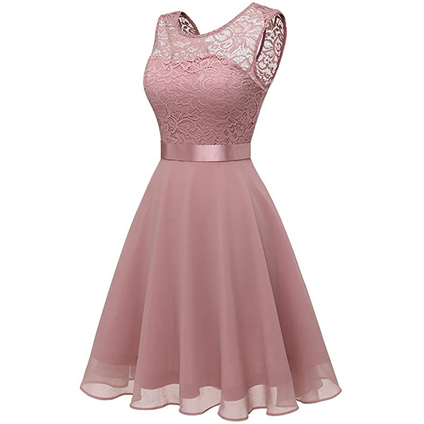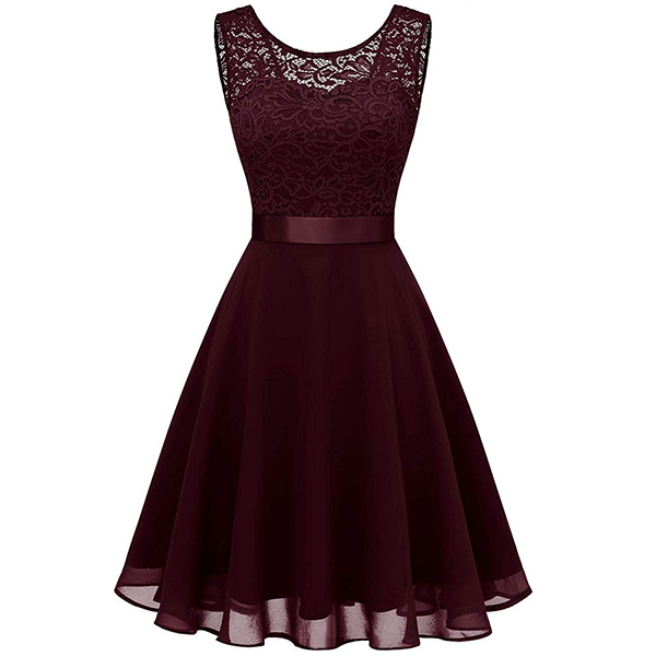 Featuring a stunning spliced design that combines delicate lace and flowing chiffon, this crew neck dress exudes an air of sophisticated femininity. Wanna have a try?