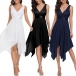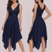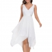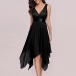 Elegant Lace Spliced Chiffon V-neck Sleeveless Irregular Hemline Dress