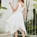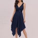 This dress features a V-neckline and irregular hemline, which adds a touch of elegance and femininity to the overall design. Lace bodice with chiffon skirt, the combination of these two elements creates a beautiful and eye-catching contrast. Made from high-quality materials, this dress is comfortable to wear and has a lightweight and breathable feel.