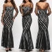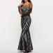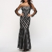 Elegant Lace Spliced Gauze Off-the-shoulder Long Sleeve Backless Fishtail Party Dress