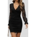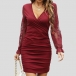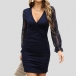 Elegant Lace Spliced Long Sleeve V-neck Bodycon Dress