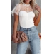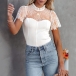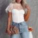 Elegant Lace Spliced Mock Neck Ribbed Shirt