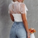 Look at this shirt, the lace spliced mock neck and ribbed fabric make it both stylish and comfortable. Wanna have a try?