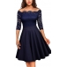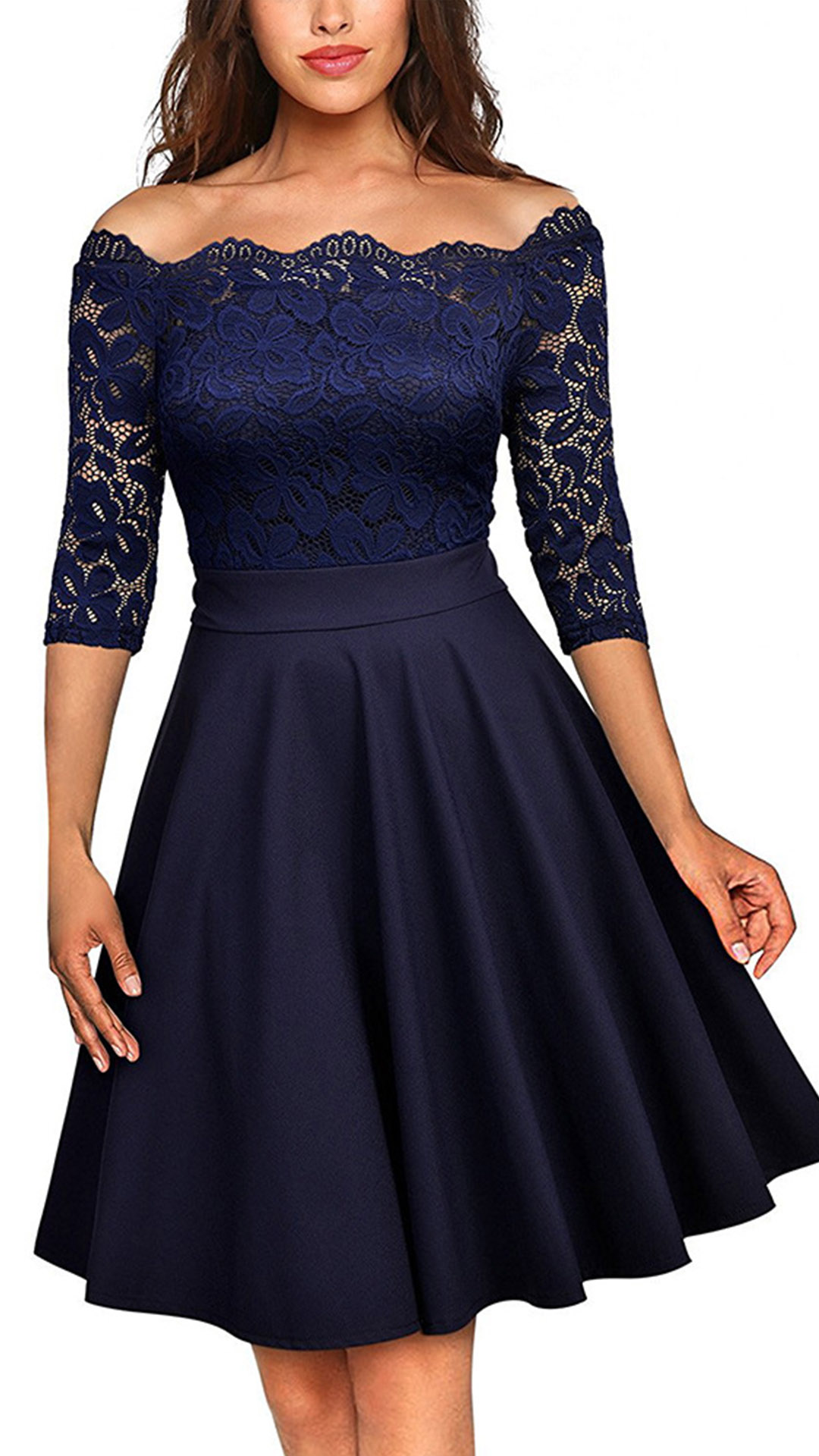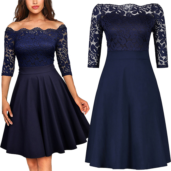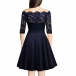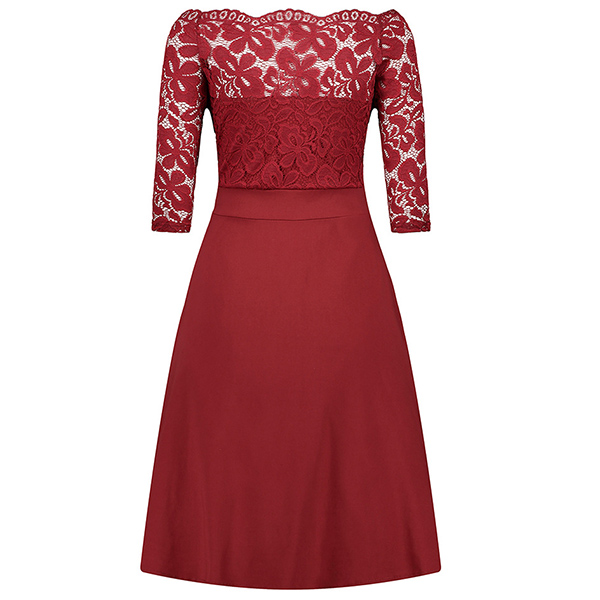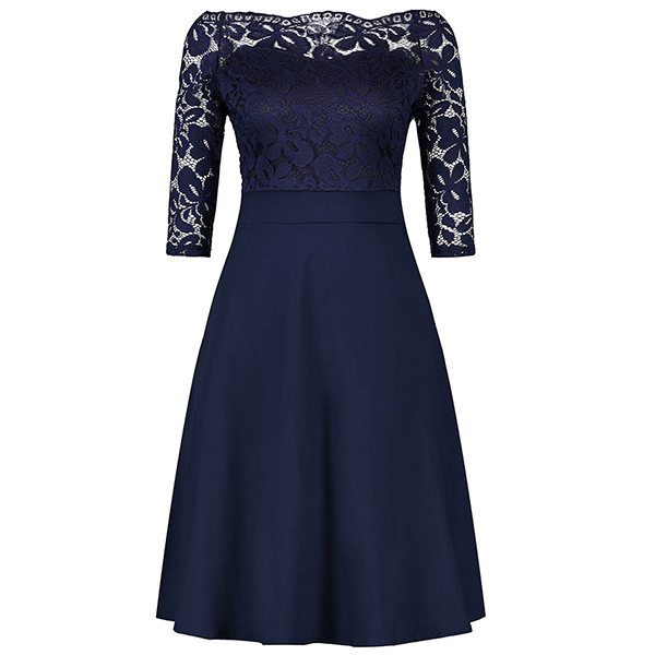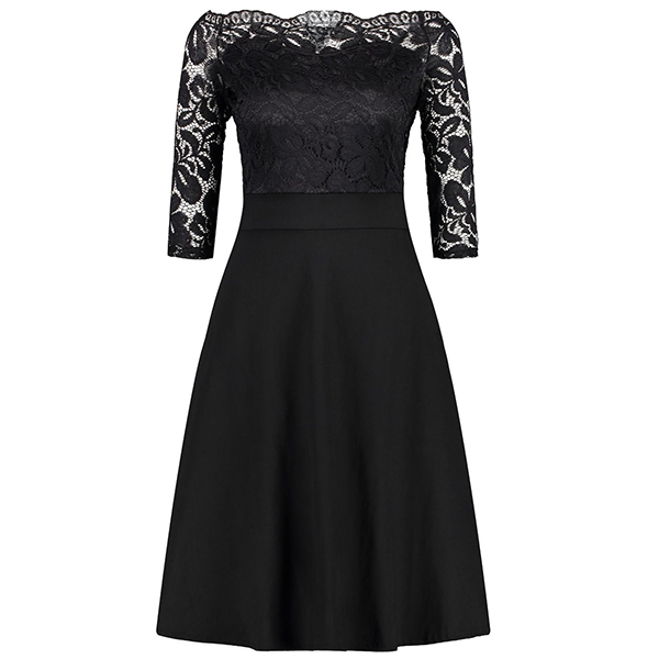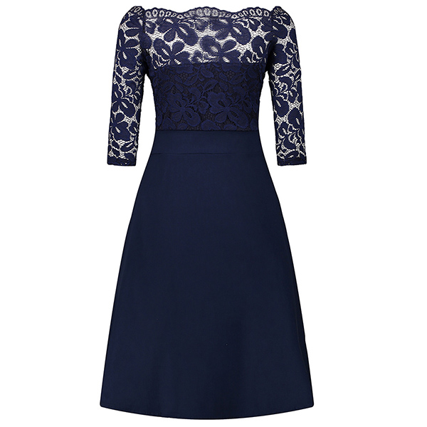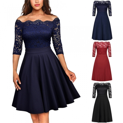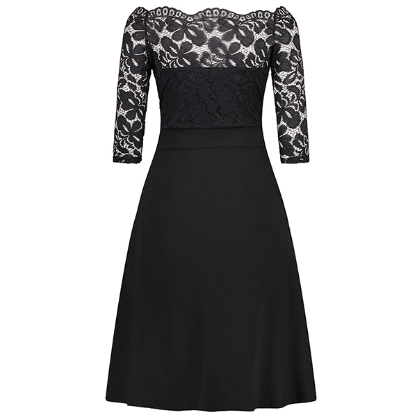 Elegant Lace Spliced Off-the-shoulder Elbow Sleeve Mini Dress