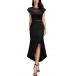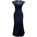 Elegant Lace Spliced Round Neck Cap Sleeve Pleated Fishtail Irregular Hemline Party Dress