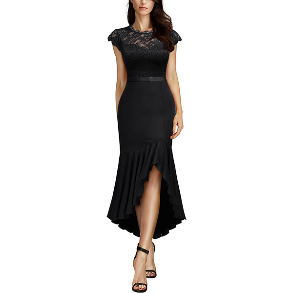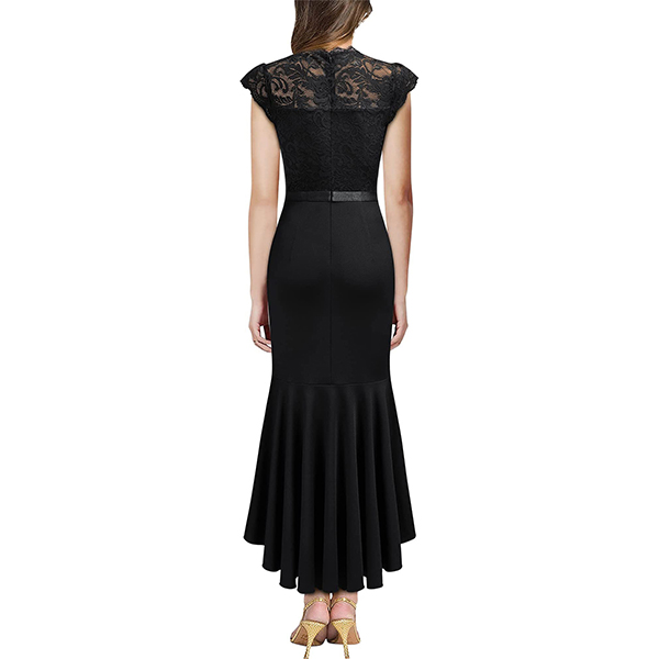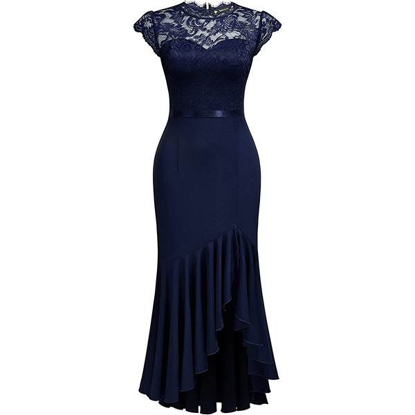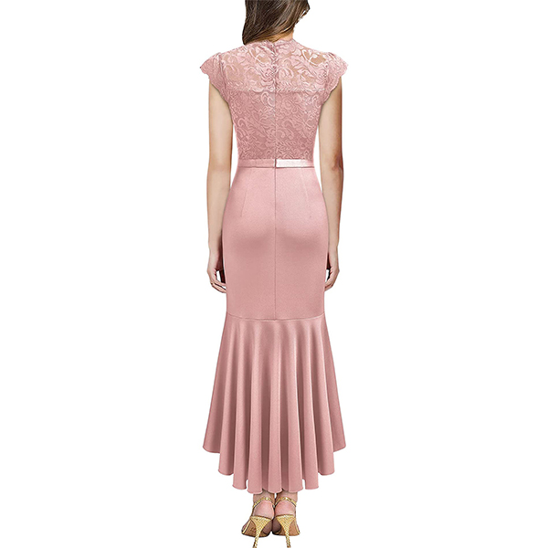 This party dress is the perfect choice for a special occasion. The elegant lace spliced bodice design adds a touch of sophistication, while the cap sleeves and round neck create a classic silhouette. The pleated fishtail hemline gives it a unique and eye-catching look, perfect for making a statement. The irregular hemline adds a touch of playful charm, while the lightweight fabric ensures a comfortable fit all night long. I like this party dress, and you?