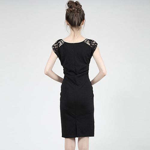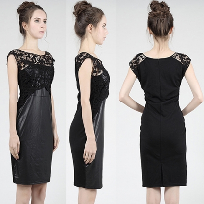 Lace spliced design makes it so feminine and sultry. Fit silhouette design,can perfect sets off your slender figure.