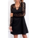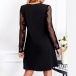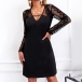 Elegant Lace Spliced V-neck Black A-lined Dress