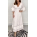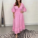 This dress exudes sophistication and femininity, making it perfect for special occasions or formal events. The V-neckline adds a touch of allure, while the elbow-length sleeves provide coverage and a sense of refinement. Whether you’re attending a wedding, a cocktail party, or a gala, this dress is sure to make a statement.