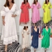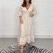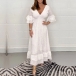 Elegant Lace Spliced V-neck Elbow Sleeve Midi Dress