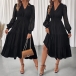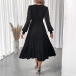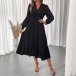Elegant Lace Spliced V-neck Lace Spliced Long Sleeve High-rise Midi Dress