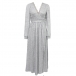 Elegant Lace Spliced V-neck Long Sleeve High-rise Side Slit Gray Midi Dress