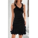 Elegant Lace Spliced V-neck Ruffled Mini Black Dress