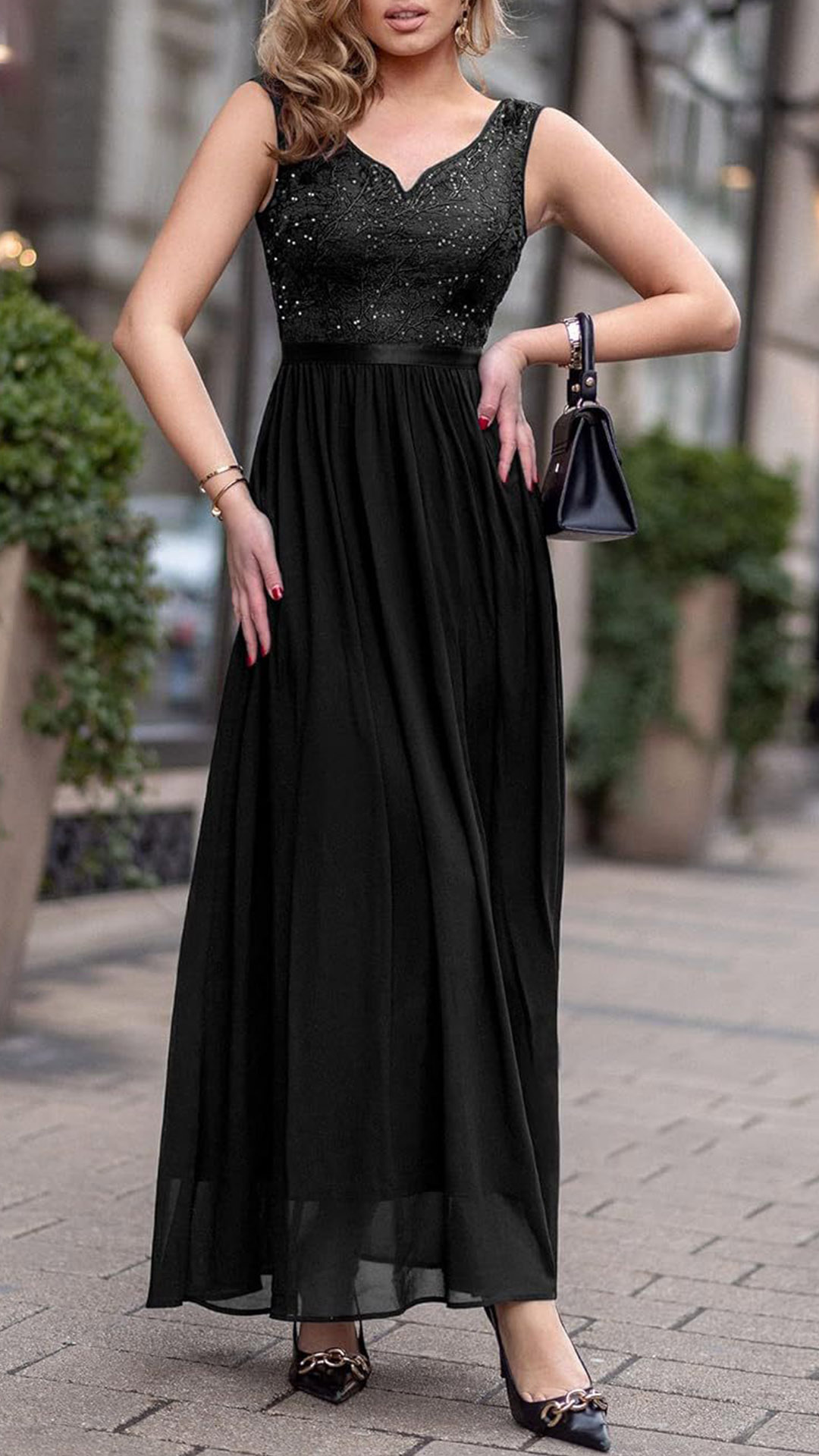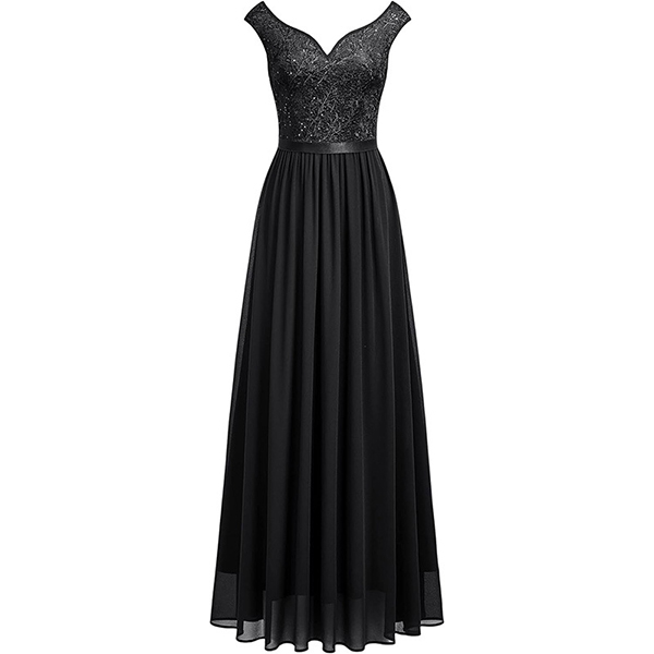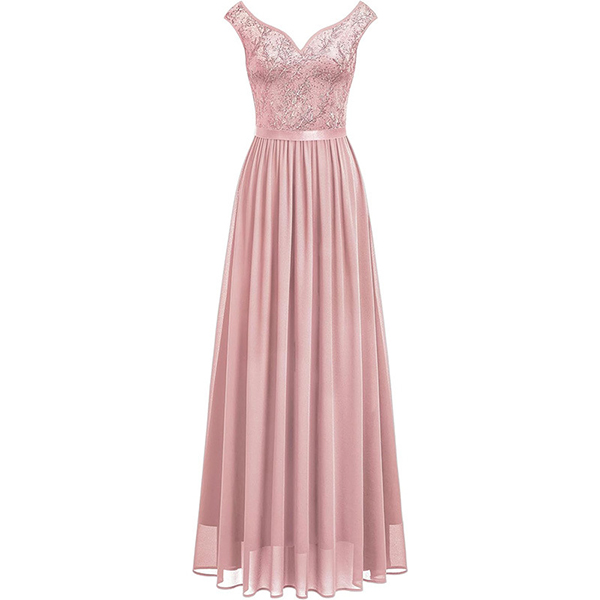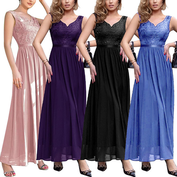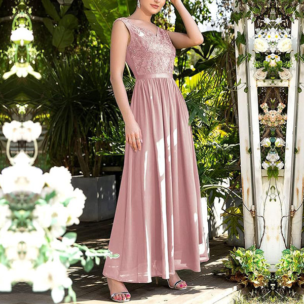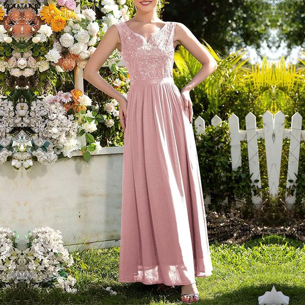 Look at this dress! The lace splicing bodice adds a romantic and timeless element, perfect for creating a chic and graceful outfit. The maxi length adds a touch of drama and elegance to the dress. It creates a flowy and ethereal silhouette, perfect for special occasions or formal events.