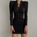 Elegant Lace Splived V-neck Long Sleeve Ruched Bodycon Dress