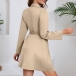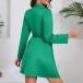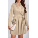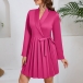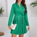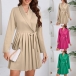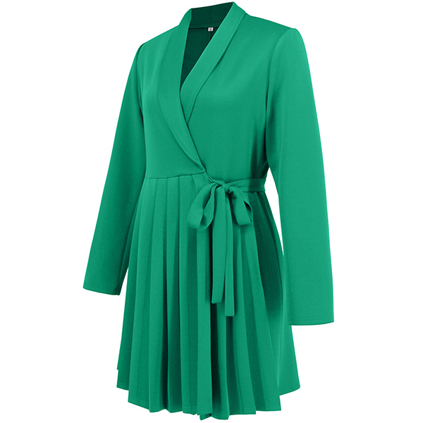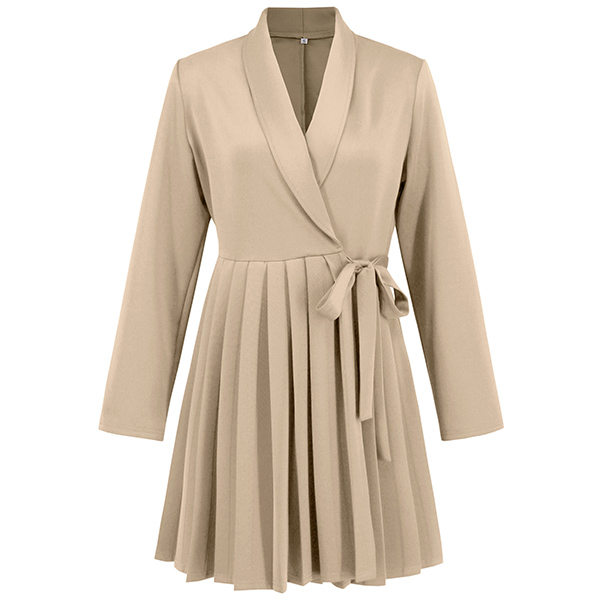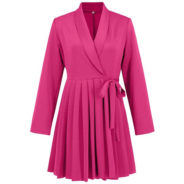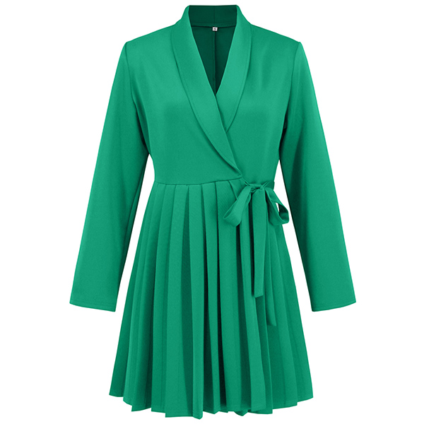 Elegant Lapel V-neck Long Sleeve Pleated Self-tie Wrap Dress