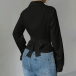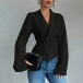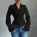 How about this blouse? The lapel V-neck design adds a classic and polished touch, while the long sleeves provide a refined and timeless look. The self-tie detail at the waist adds a modern and flattering element, allowing you to cinch in the blouse for a customized and figure-enhancing fit. It is the perfect addition to your wardrobe for a touch of elegance and style.