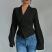 Elegant Lapel V-neck Long Sleeve Self-tie Blouse