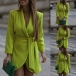 This is a stunning, elegant dress that is perfect for any special occasion. The lapel V-neck is both flattering and stylish, and the long sleeves and self-tie slit add a touch of sophistication. Wanna have a try?