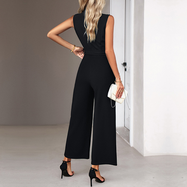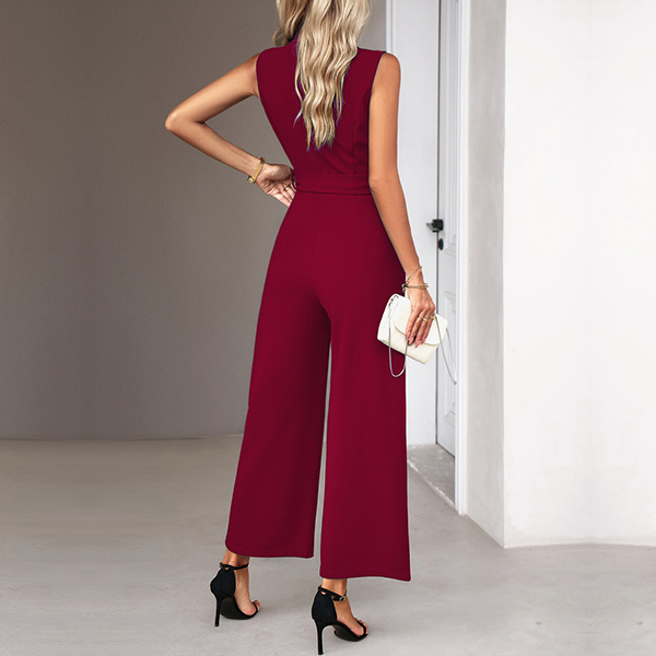 Elegant Lapel V-neck Self-tie Wide-leg Jumpsuit
