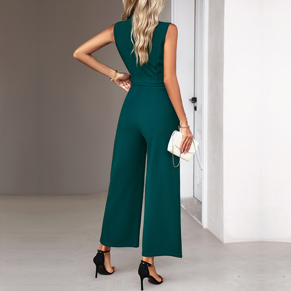 This jumpsuit features a lapel V-neck, self-tie waist, and wide-leg silhouette for an elegant and fashion-forward look. Pair it with heels and minimal accessories for a complete and glamorous ensemble.