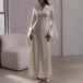 Elegant Lapel V-neck Trumpet Long Sleeve Front Button Maxi Dress