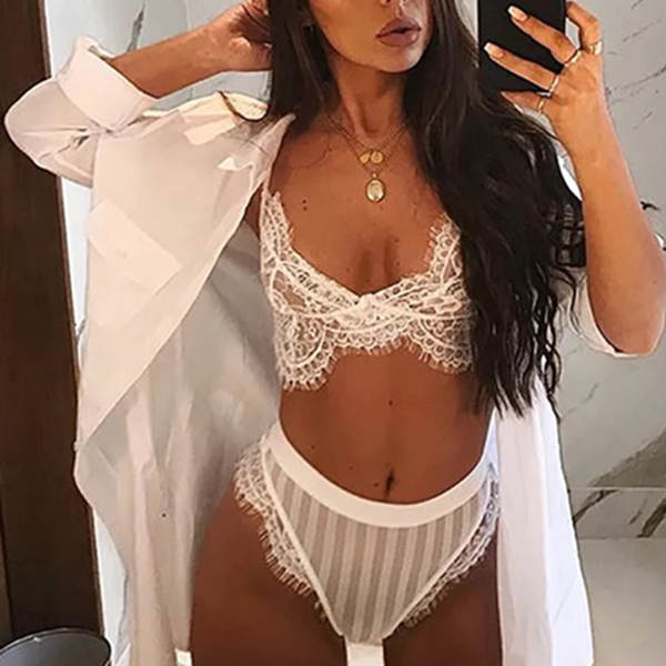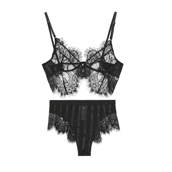 Elegant Lingerie Set - Delicate Backless Lace Bra with Matching High-Waist Panty