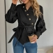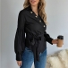 Elegant Long Sleeve Button Irregular Hemline Tie-belt Wrap Shirt