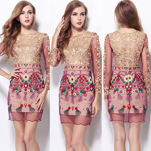 Exquisite embroidery craft makes this dress more attractive and glamorous. Take it to your home!
